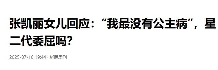 参考文献:北青网|提名金鹰奖最佳女配角 演员张可盈:主角配角都要塑造完整角色 新民周刊|张凯丽女儿回应:“我最没有公主病”,星二代委屈吗?